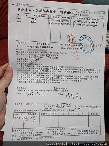 然後就出去請別人打紀錄,然後帶著超多張的調解筆錄來讓我們簽名